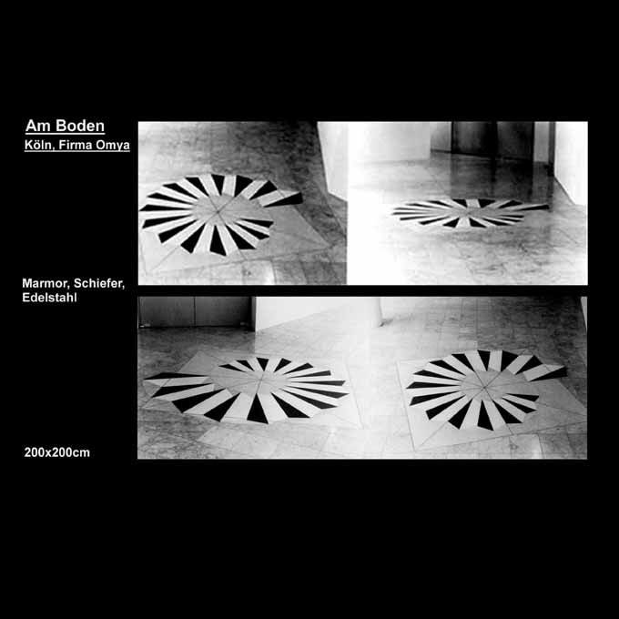 Floor designed for the foyer of the office of the Company OMYA in Cologne in 1993. Marble, slate, steel, 200x200cm.