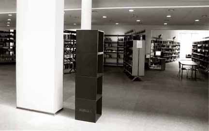 The bookcase consits of 4 open boxes made of slate with a softly polished surface. The name JORGE LUIS BORGES forms a spiral on the outside wall of the the cubes. Inside of the upper cube one reads the spanish word "YO" which in english means "I". "YO" is also the title of a poem by Borges (1899-1986). The "book" is the most important topic of Borges stories, of which the "Library of Baal" may be the most famous. The library in this story is a universal maze in which all books of mankind are stored and in which the human being is searching endlessly for selfjustification. Umberto Eco used this story for his novel "The Name of the Rose."
